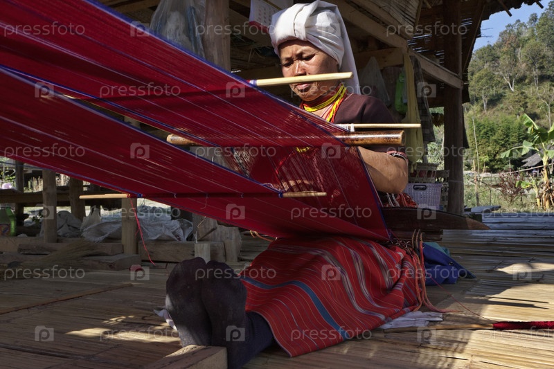 Таиланд, Чианг Май. Женщина из древнего племени в традиционном костюме ткет ковер