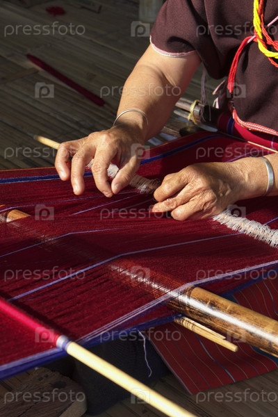 Таиланд, Чианг Май, деревня племени Карен, женщина в традиционном костюме делает ковер