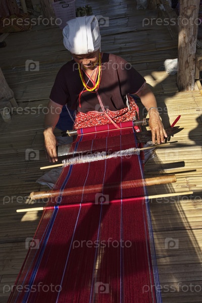 Таиланд, Чианг Май, деревня племени Карен, женщина в традиционном костюме делает ковер