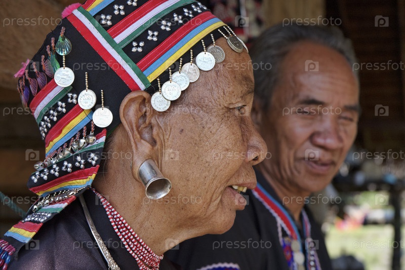 Таиланд, Чианг Май, деревня племени Карен, семейная пара в традиционных костюмах