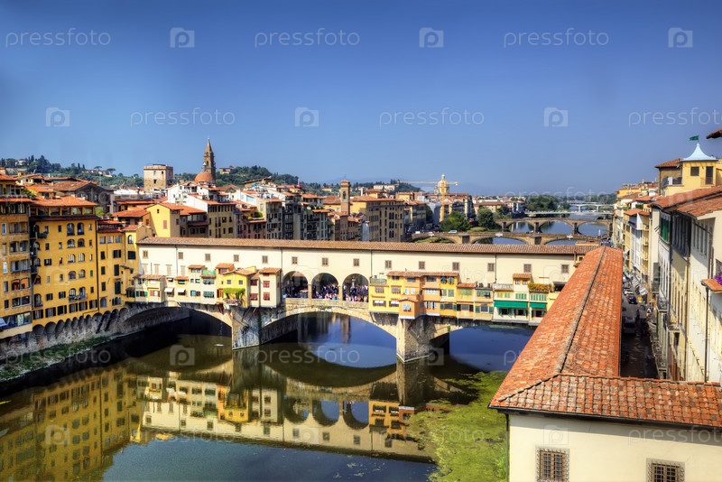 Вид на Золотой мост (Понте Веккьо) из окна Галереи Уффици. Флоренция, Италия