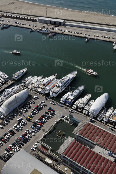 Италия, Тоскана, Виареджо, аэрофотоснимок роскошных яхт в порту