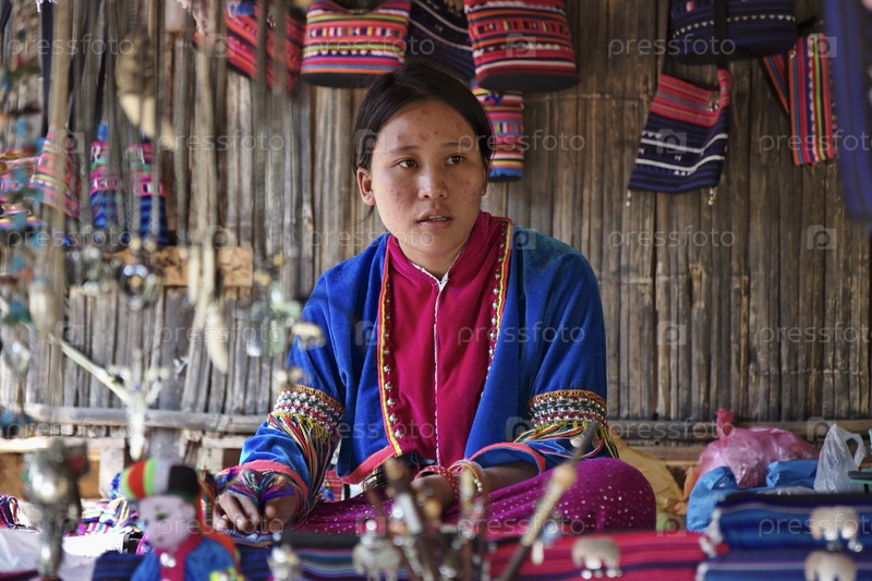 Молодая женщина в традиционном костюме своей деревни, Таиланд