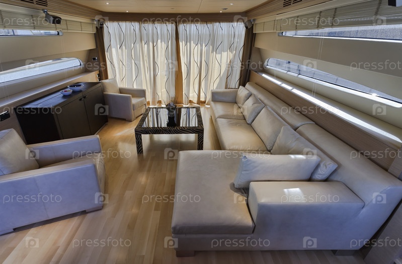 Италия, Тоскана, Виареджо. Интерьер роскошной яхты, обеденная зона