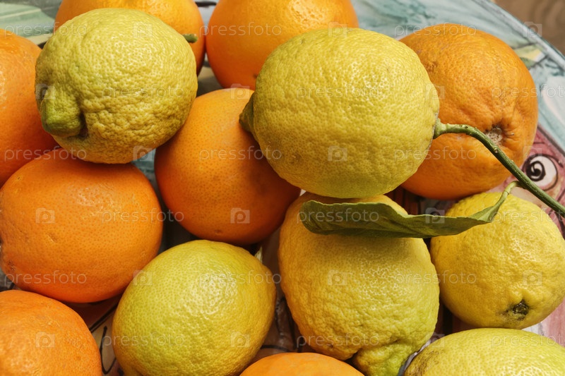 Италия. Сицилийские апельсины и лимоны на красивом блюде