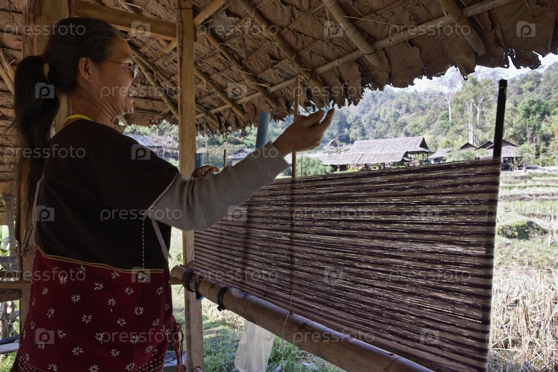 Таиланд, Чианг Май. Женщина из древнего племени в традиционном костюме ткет ковер