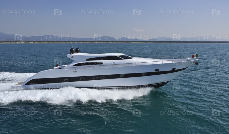 Италия, Тирренское море, побережье Виареджио. Роскошная яхта, вид сверху