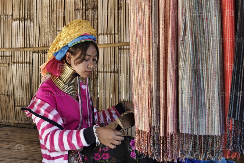Древнее племя. Женщина в традиционном костюме с латунными кольцами на шее. Таиланд, Чанг Маи
