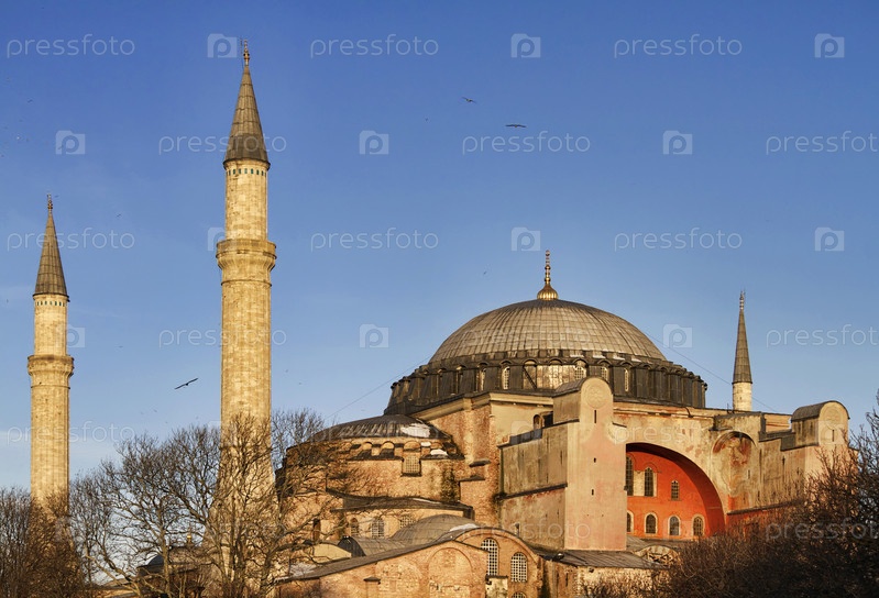 Турция, Стамбул, собор Святой Софии на закате (построен в IV веке Константином Великим и реконструирован в VI веке Юстинианом)