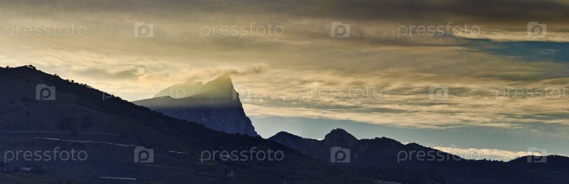 Италия, Сицилия, горы Неброди, панорамный вид на закате