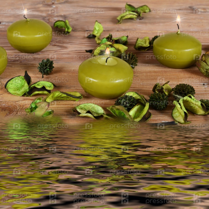 Ароматические свечи на бамбуковом коврике