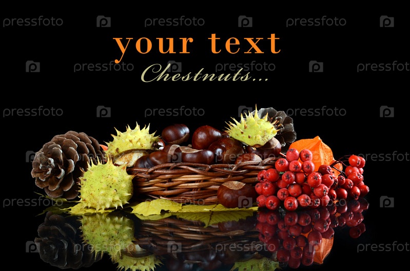 Осенний натюрморт - каштаны и рябина