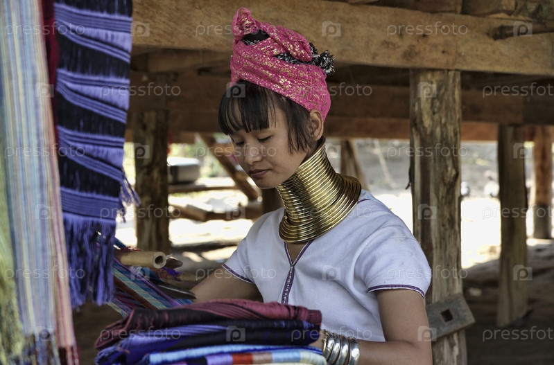 Таиланд, Чанг Маи, деревня племени Карен. Женщина за работой с латунными кольцами на шее в качестве символа красоты