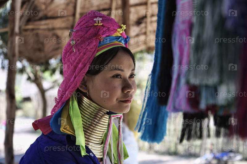 Таиланд, Чанг Маи, деревня племени Карен. Женщина с латунными кольцами на шее в качестве символа красоты