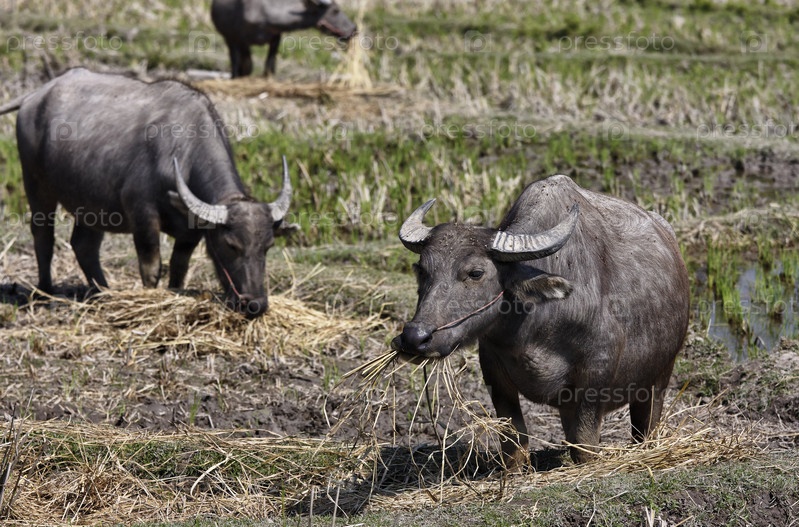 Таиланд, Чианг Май, Баан Тонг Луанг, деревня Карен, буйволы на рисовом поле