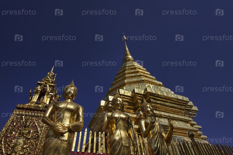 Золотой Будда и крыша храма, Таиланд, Чианг Май,