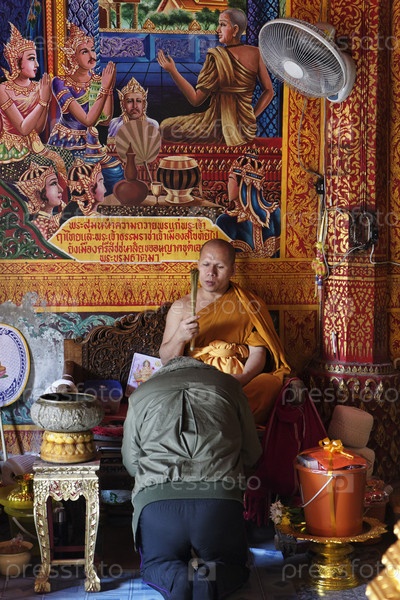 Таиланд, Чиангмай, тайский буддийский монах в буддийском храме Пратхат Дой Сутеп