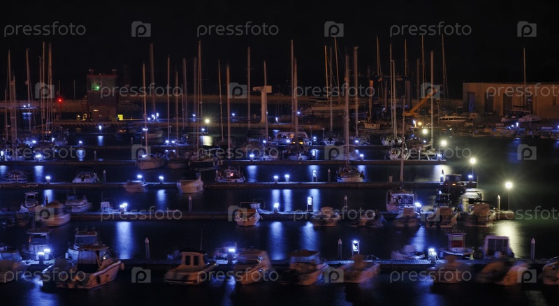 Италия, Сицилия, Средиземное море, Марина ди Рагуза, роскошные яхты в гавани в ночное время