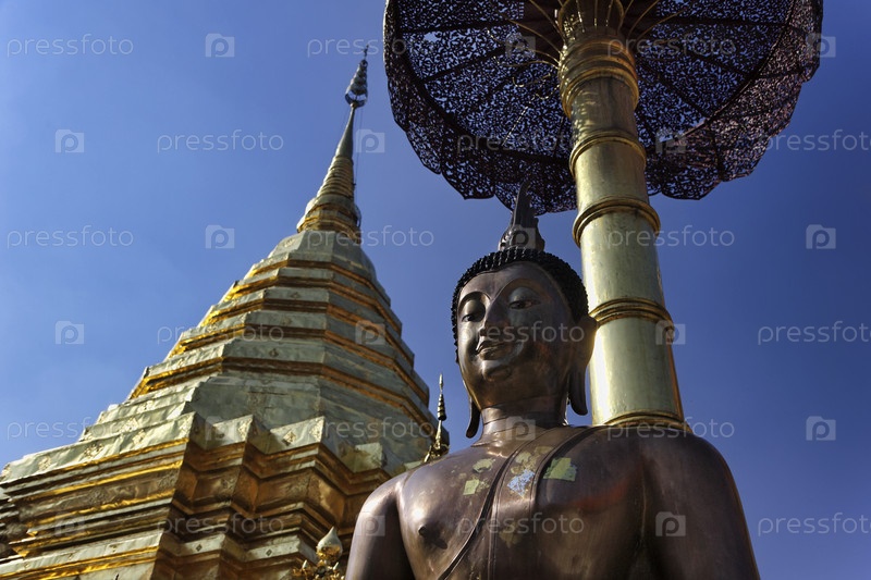 Таиланд, Чиангмай, Пратхат Дой Сутеп, буддийский храм, золотая крыша и старая статуя Будды