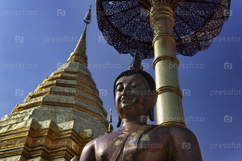 Таиланд, Чиангмай, Пратхат Дой Сутеп, буддийский храм, золотая крыша и старая статуя Будды