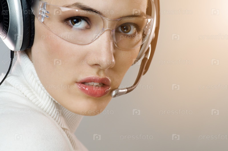 Красивая женщина с гарнитурой