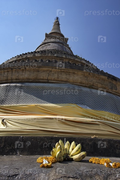 Таиланд, Чианг Май, Ю-Монг, буддийский храм, фрукты и цветы, жертвуемые тайскими верующими