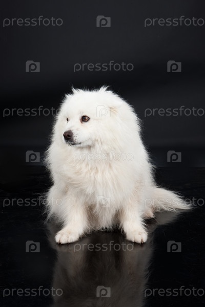 Самоедская собака на черном фоне