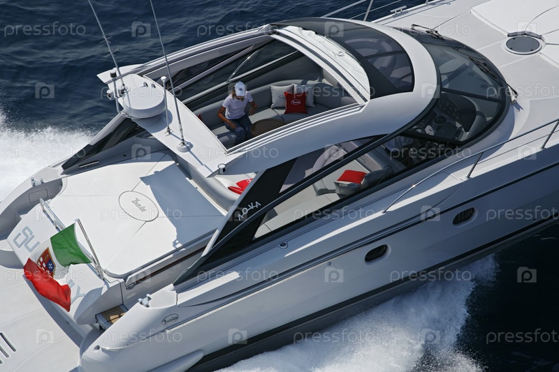 Италия, у берегов Неаполя, роскошная яхта (катеростроительный завод: Кантиери ди Байя), вид сверху