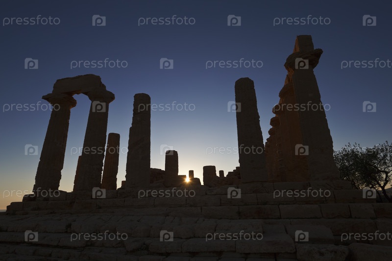 Италия, Сицилия, Агридженто, Долина греческих храмов, храм Темпл (480-420 до н.э.) на закате