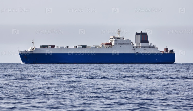 Италия, Сицилия, Средиземное море. Грузовое судно