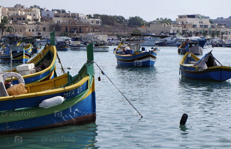 Деревянные рыбацкие лодки в гавани, Остров Мальта, Марсашлокк