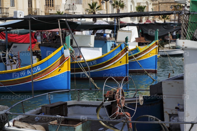 Остров Мальта, Марсашлокк, деревянные рыбацкие лодки в гавани
