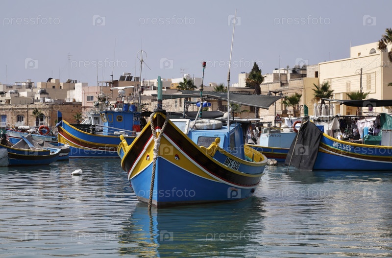 Остров Мальта, Марсашлокк, деревянные рыбацкие лодки в гавани