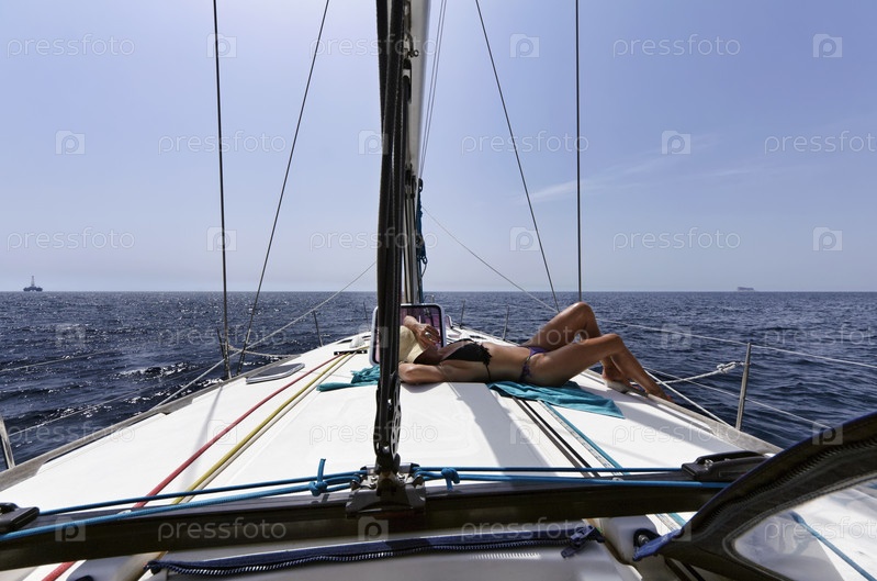 Средиземное море, Сицилийский канал, женщина на парусной лодке
