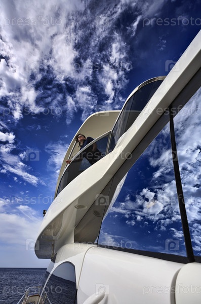 Италия, Тоскана, остров Эльба, роскошная яхта Азимут 75', женщина на мостике