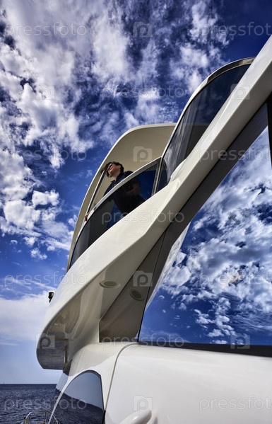Италия, Тоскана, остров Эльба, роскошная яхта Азимут 75', женщина на мостике
