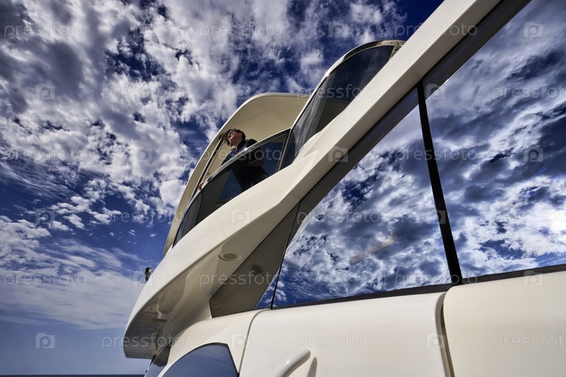 Италия, Тоскана, остров Эльба, роскошная яхта Азимут 75', женщина на мостике