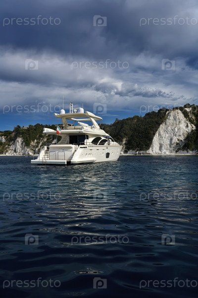 Италия, Тоскана, остров Эльба, вид на побережье и роскошную яхту Азимут 75'