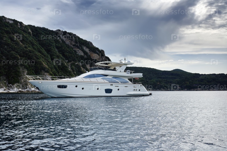 Италия, Тоскана, остров Эльба, вид на побережье и роскошную яхту Азимут 75'