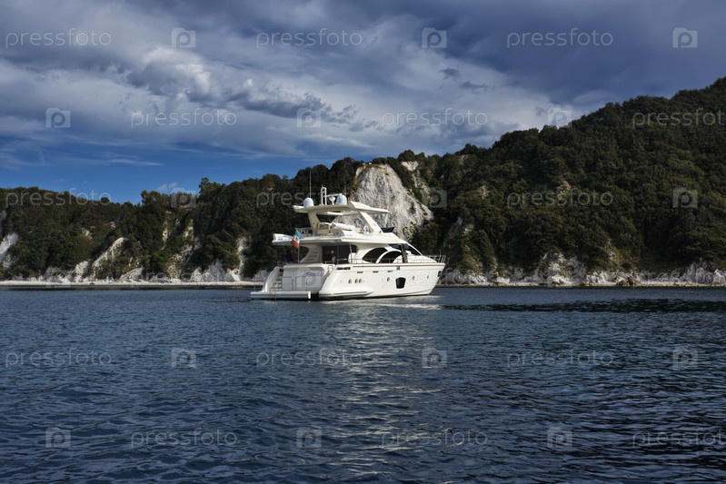 Италия, Тоскана, остров Эльба, вид на побережье и роскошную яхту Азимут 75'