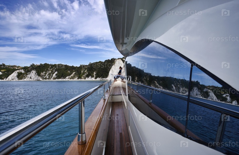 Италия, Тоскана, остров Эльба, роскошная яхта Азимут 75', женщина на палубе