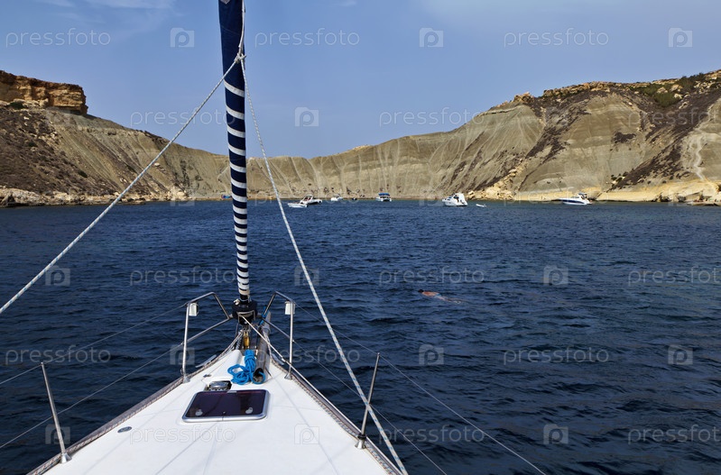 Вид южного скалистого побережья острова Мальта и залив Джнейна с парусника