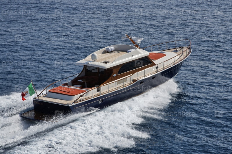 Италия, Лацио, Фьюмичино, Тирренское море, роскошная яхта в стиле лобстер Морган 70', вид сверху