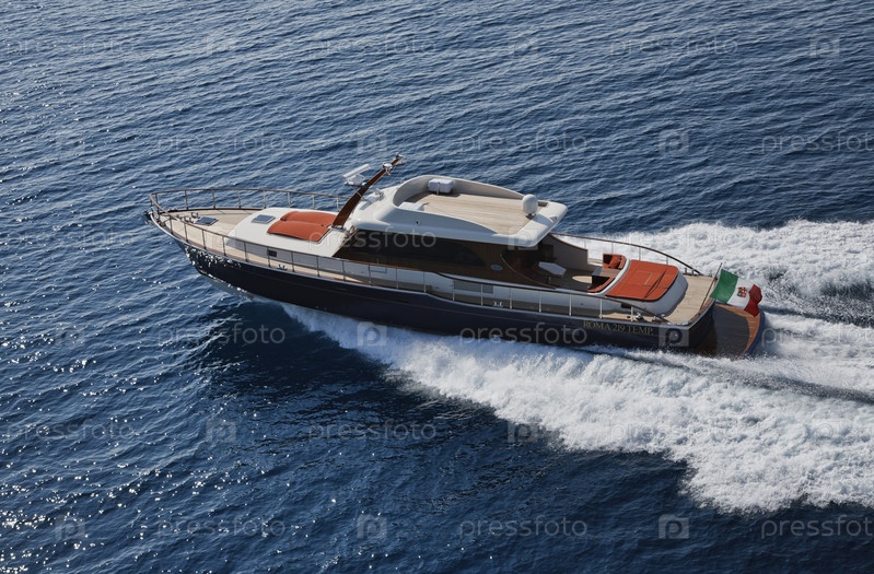 Италия, Лацио, Фьюмичино, Тирренское море, роскошная яхта в стиле лобстер Морган 70', вид сверху