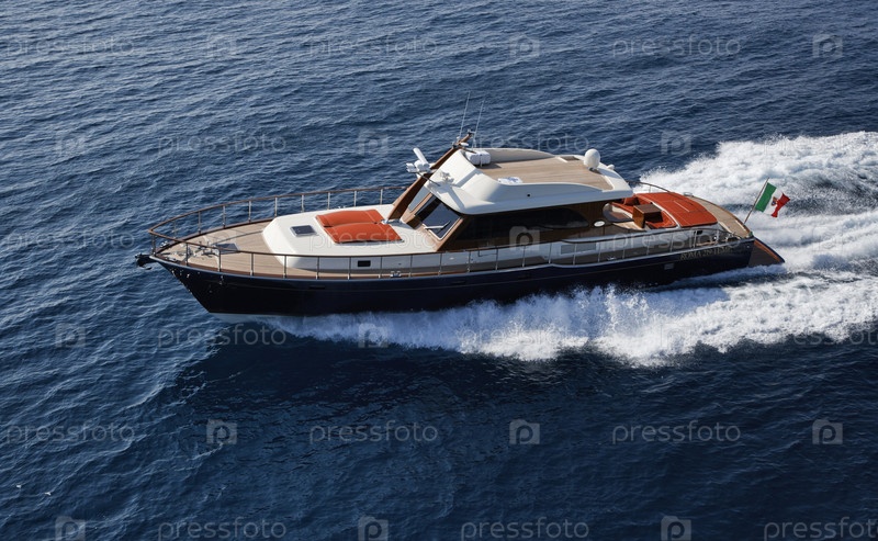 Италия, Лацио, Фьюмичино, Тирренское море, роскошная яхта в стиле лобстер Морган 70', вид сверху