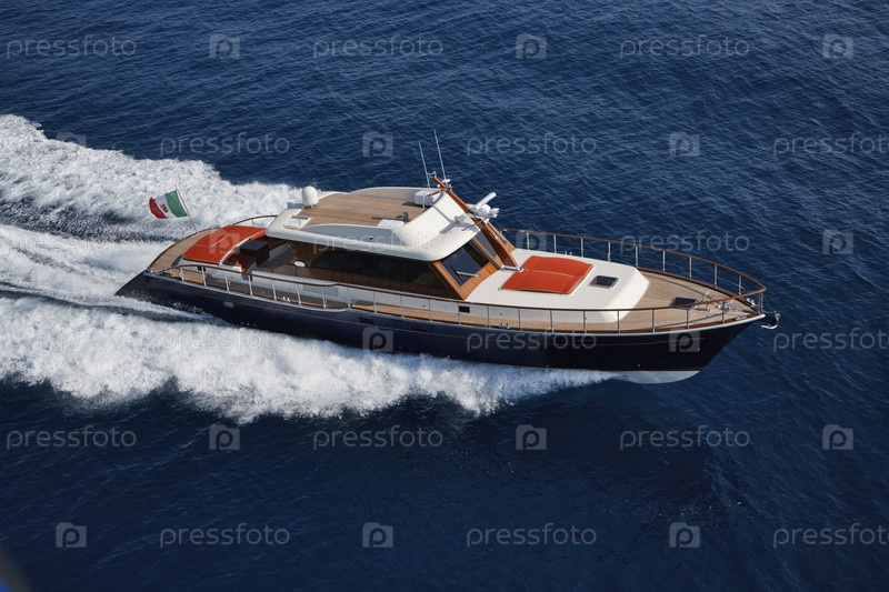 Италия, Лацио, Фьюмичино, Тирренское море, роскошная яхта в стиле лобстер Морган 70', вид сверху