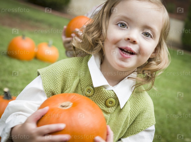 Симпатичная маленькая девочка с тыквой