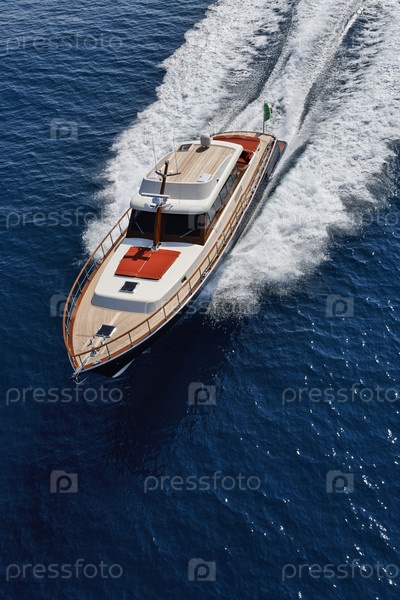 Италия, Лацио, Фьюмичино, Тирренское море, роскошная яхта в стиле лобстер Морган 70', вид сверху