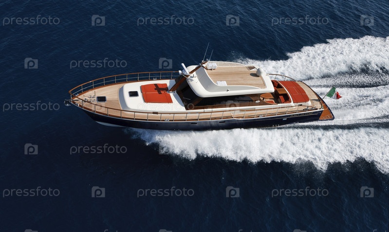 Италия, Лацио, Фьюмичино, Тирренское море, роскошная яхта Морган 70', вид сверху