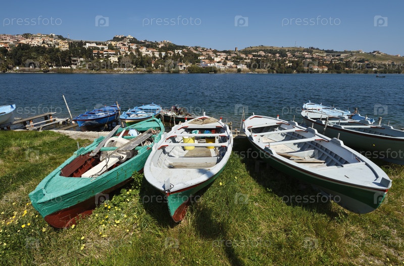 Италия, Сицилия, Мессина, озеро Ганцирри, рыбацкие лодки